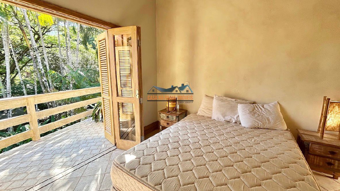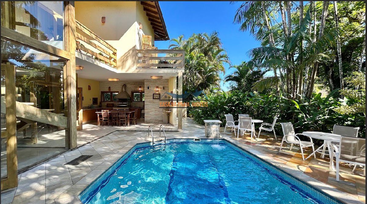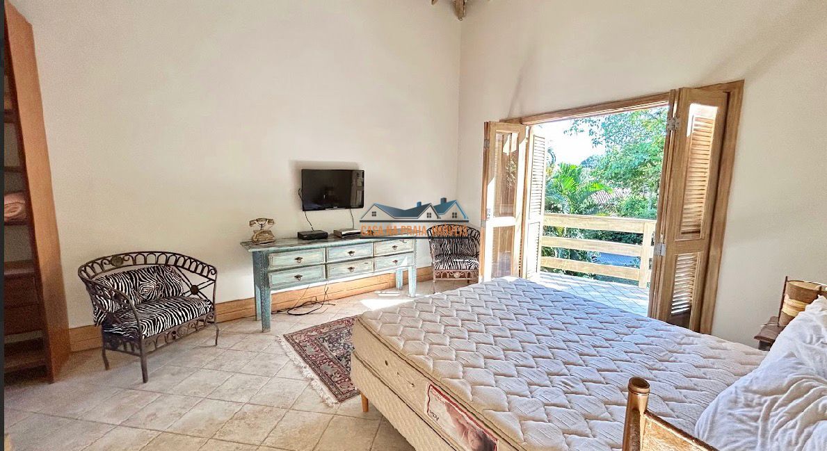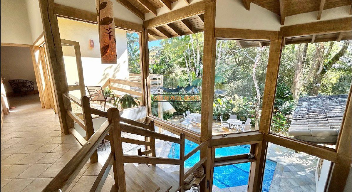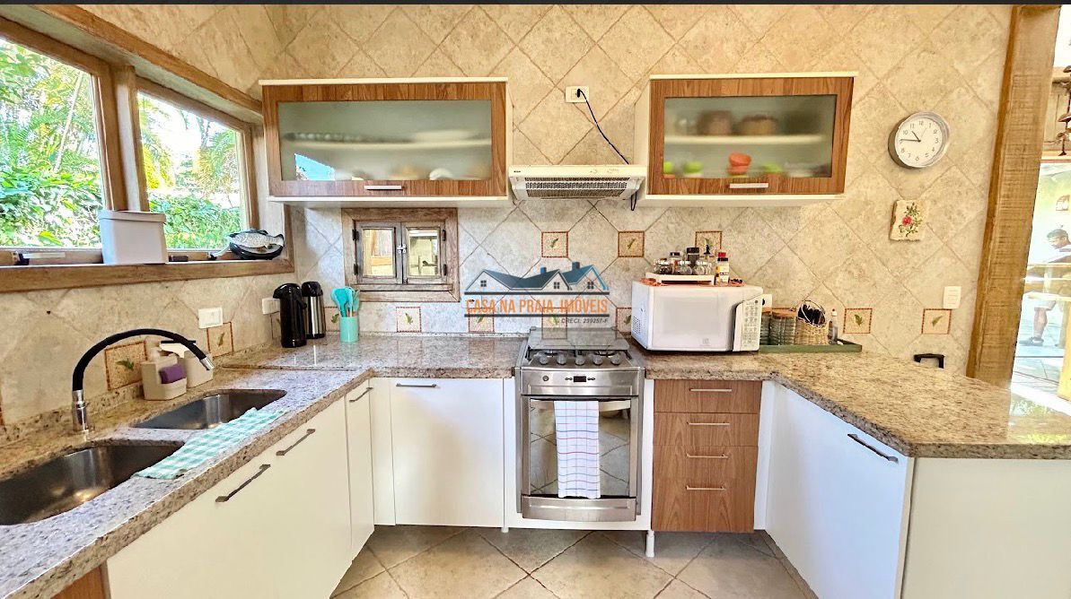 Com arquitetura praiana típica da região, o imóvel valoriza elementos como vidro, madeira e mobiliário que evocam o estilo caiçara, criando uma atmosfera leve, elegante e perfeitamente integrada ao entorno natural.